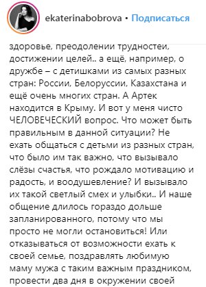 Спортсменка в своем Instagram с вопросительной интонацией написала, что в данной ситуации нужно либо не ехать общаться с детьми из разных стран, или отказаться от возможности ехать к своей семье на день рождения мамы супруга и поздравлений ее с этим важным праздником.